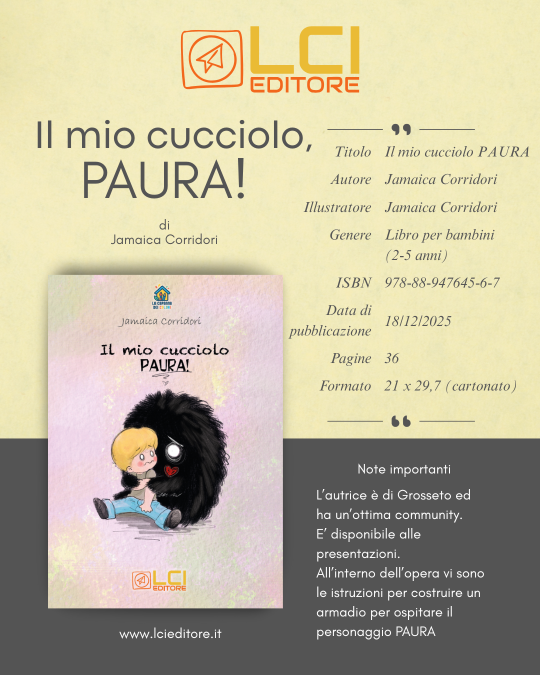 Dopo il successo del volume dedicato alla rabbia, Jamaica Corridori torna nella collana, La capanna dei colori, con un nuovo libro incentrato sulla paura, la seconda emozione affrontata nel suo percorso creativo ed educativo. Anche questa volta il personaggio della paura prende forma in 3D, secondo lo stile distintivo dell’illustratrice grossetana, offrendo ai piccoli lettori un’esperienza visiva coinvolgente e immediata. L’opera non si limita alla narrazione: invita infatti i giovani genitori a una riflessione pratica sulla gestione della paura nei bambini, proponendo strategie semplici e applicabili nella quotidianità. Attraverso una storia ricca di nuovi personaggi e situazioni, ogni bambino è accompagnato a riconoscere e trasformare questa emozione. Come da tradizione della collana, nelle pagine finali genitori e figli troveranno le istruzioni per costruire insieme un oggetto legato al tema del racconto, favorendo un momento di condivisione e crescita emotiva. Data pubblicazione: 15/12/2025 In preordine dal 15/11/2025 (Con il preordine, l’autrice realizzerà e allegherà un disegno personalizzato dedicato al tuo bambino. Scrivi qui sotto il nome del bambino/a, così che l’illustrazione possa essere dedicata esclusivamente a lui/lei.)